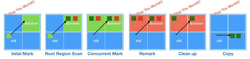 Initial Mark : Old Region에 존재하는 객체들이 참조하는 Survivor Region을 찾는다.(STW)