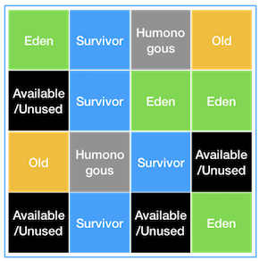 G1GC는 Eden, Survivor, Old 영역이 존재하지만, 해당 영역은 고정된 크기가 아니며 전체 Heap 메모리 영역을 Region 이라는 특정한 크기로 나눈 것이고 Region의 상태에 따라 그 Region의 역할(Eden, Survivor, Old)가 동적으로 변동한다.