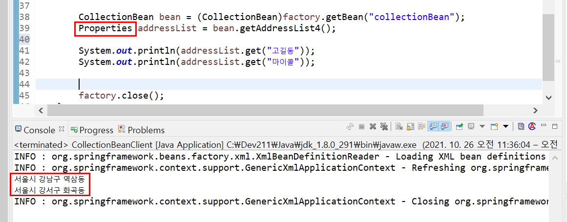 <prop key="마이콜">서울시 강서구 화곡동</prop>