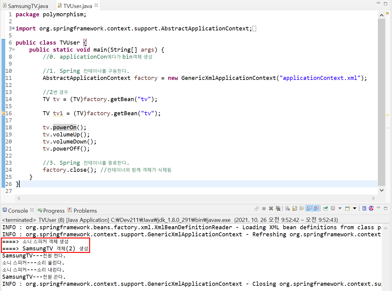 System.out.println("====> SamsungTV 객체(2) 생성");