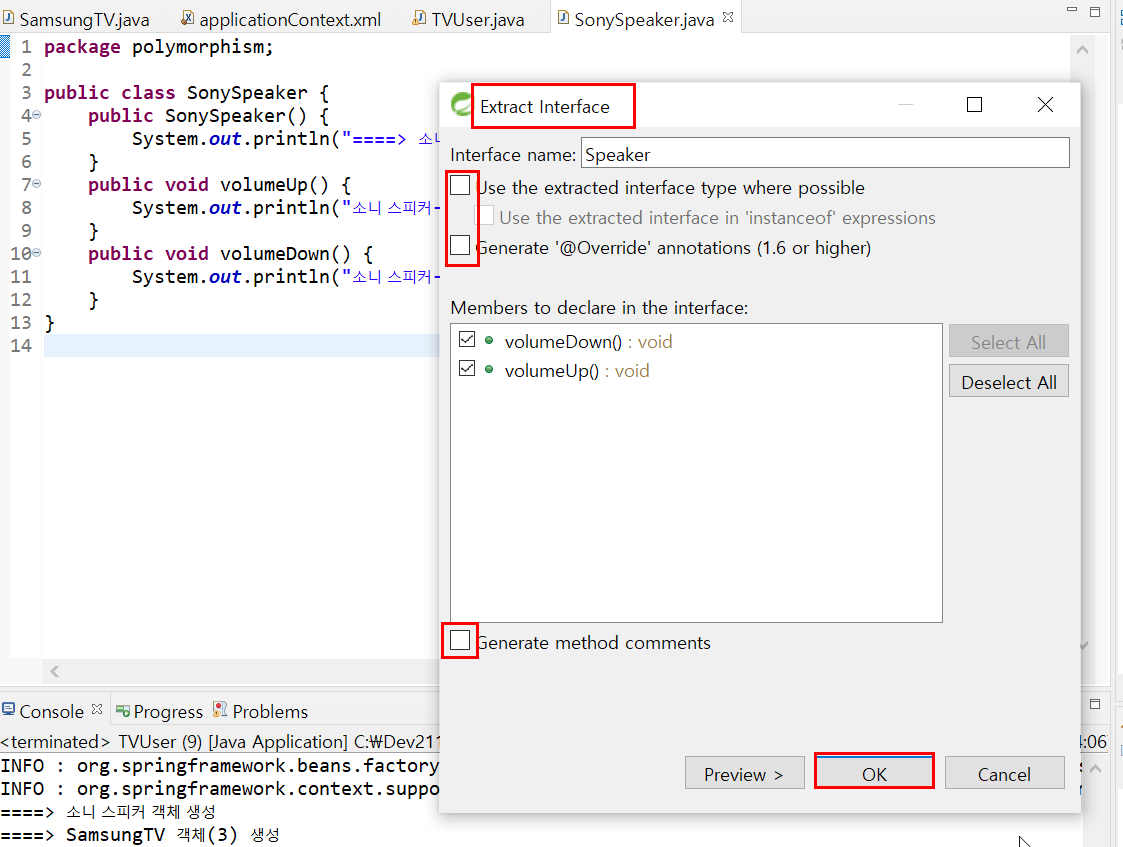 - SonySpeaker객체 생성 및 볼륨 조절 기능을 SonySpeaker가 사용할 수 있도록 수정