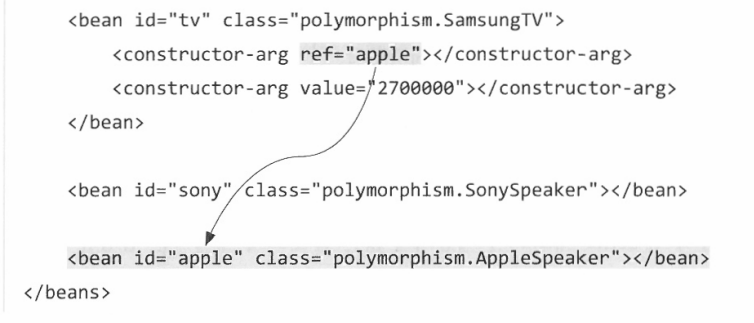 <bean id="sony" class="polymorphism.SonySpeaker"></bean>
